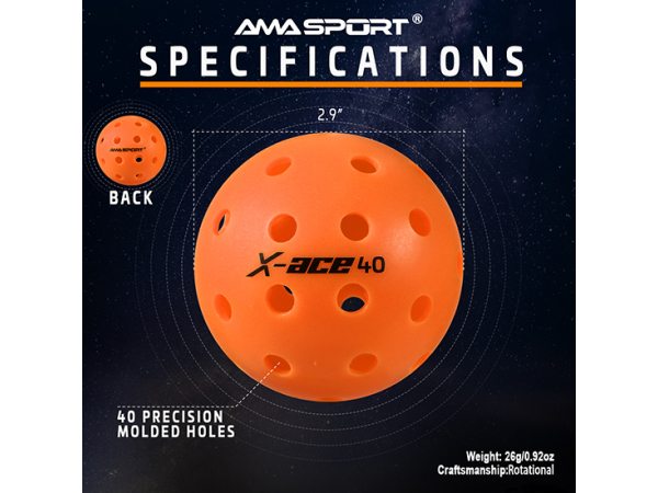 Bóng Pickleball xoay AMA SPORT X-ACE40 - Màu cam - 12 quả (PET)