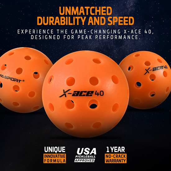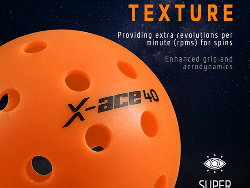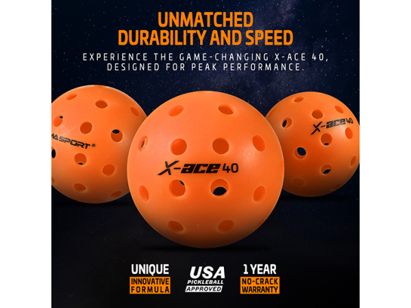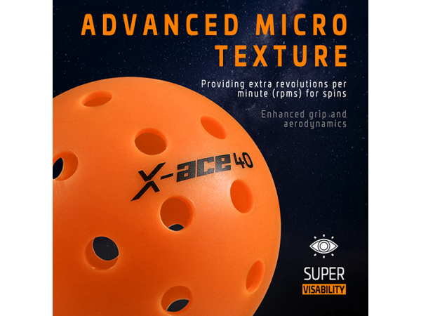 Với 40 lỗ được khoan chính xác bằng máy, dòng sản phẩm X-ACE 40 đảm bảo đường bay và độ nảy ổn định, đáp ứng tiêu chuẩn chuyên nghiệp. Chất liệu có độ đàn hồi cao giúp tăng lực đánh, trong khi công thức độ bền tiên tiến và cấu trúc liền mạch được đúc xoay mang lại hiệu suất bền lâu, không bị nứt vỡ.
